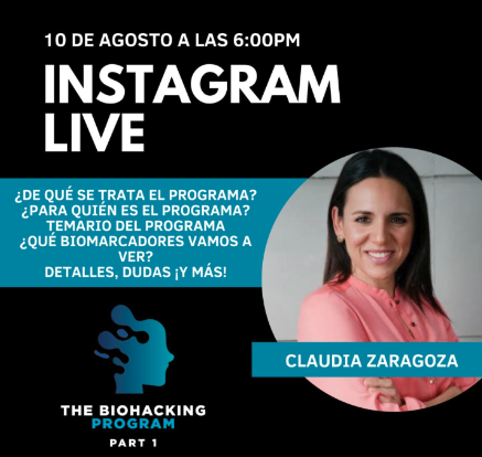Si tienes más dudas el próximo 10 de Agosto a las 6pm estaré dando un instagram live para contestar todas tus dudas y explicarte más sobre The Biohacking Program Part 1